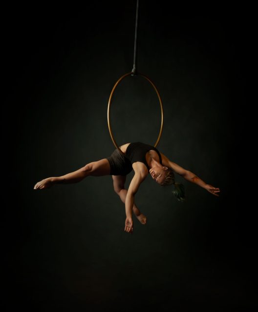 Jenny Tufts lives in Sligo and is an American-born, Ireland-based circus artist specialising in aerial hoop and spinning bar apparatus. With a diverse background that includes performances across three continents and viral success with Disney in 2022, Jenny is known for her combination of technical skill and creative expression.